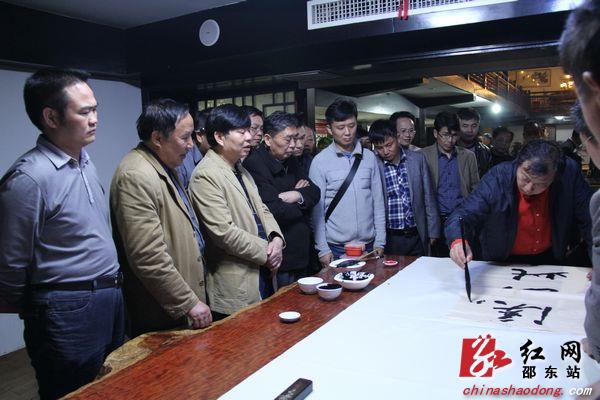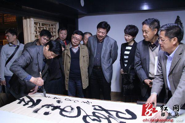 启动仪式结束后,大家还参观了邵东县实施“中国楹联文化县”建设重要基地——昭阳公园。19日晚,主办方在县城昭陵茶馆举行了省公务员巡展暨楹联书展联谊笔会,来自全省的众多书法名家纷纷挥毫泼墨,即兴发挥,一幅幅龙飞凤舞的书法作品一蹴而就,呈现在大家面前。大家都表示,笔会为他们提供了一个难得的互相交流心得,取长补短的平台。
