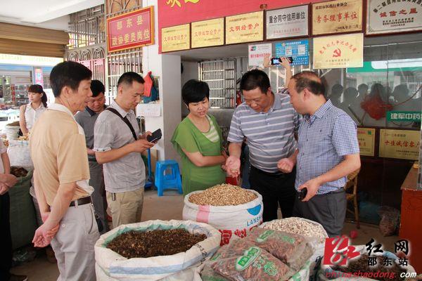 邵阳市政协副主席肖益林(右二)率调研组在廉桥药材市场调研