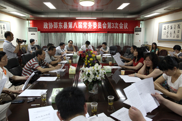 红网邵东6月18日讯(中国邵东网记者 王江梅)6月18日下午,政协邵东县第八届常务委员会召开第三次会议。邵东县政协主席申桂荣主持会议。县政协副主席王顺秋、郭竟成、谢光远、尹安中、周益智,秘书长尹严林等参加会议。