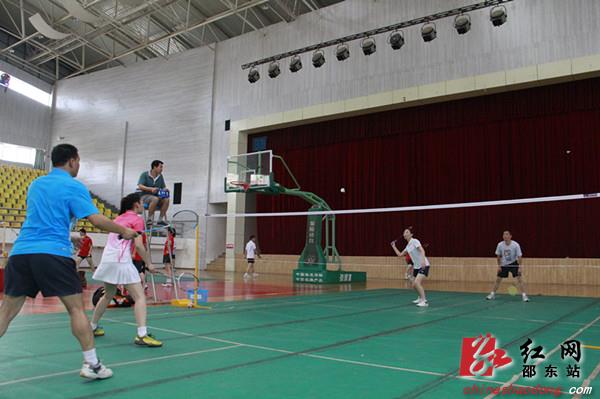 6月24日,2013年邵东县职工羽毛球赛在县体育馆举行。据了解,本次羽毛球比赛历时3天,共有县财政局、房产局、中医院等来自全县各机关单位的12支代表队,100多名运动员参加比赛。