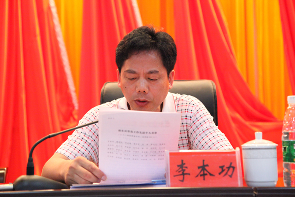 邵东县人大常委会副主任李本功宣读相关文件