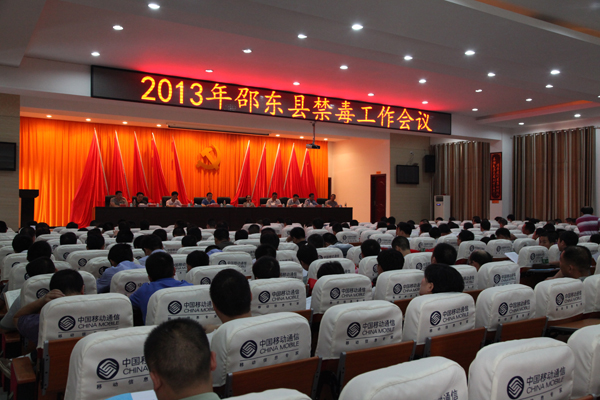 邵东县人民政府副县长、县禁毒委副主任、县公安局长朱甲云作全县禁毒工作报告。2012年,邵东县被评为全省禁毒合格县,实现了由2011年全省基本合格县向合格县的跨越。全年共破获涉毒刑事案件136起,逮捕涉毒犯罪嫌疑人员173名,被评为全市社会化禁毒先进单位、全市缉毒破案先进单位、全市禁毒协会先进单位。