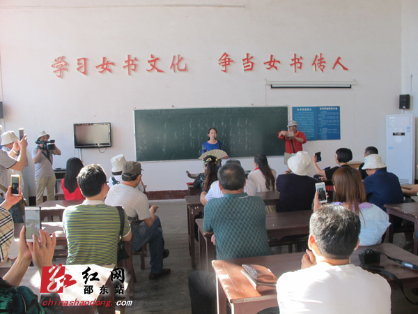 在江永女书园,会员们逐一走过女书书画厅、作品厅、女红厅、工艺品展销厅和女书学堂,溯源那一段凄美的历史,欣赏一幅幅秀丽的作品,聆听女书传人现场授课说唱,领略到世界上唯一的女性文字的魅力。县作协会员杨秀表示,女书文化让她感到了女性不一样的世界,封建社会里,女性没有地位,她们却用自己的智慧,开创了一个新的文字世界,那就是女书,也让她认识到这种文字的魅力。