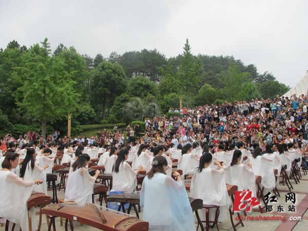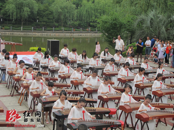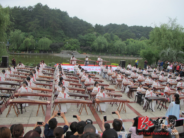 弘扬国乐,传承国粹。5月20日上午,中国古筝日来临之际,邵东县城昭阳公园绿汀湖畔古乐声声,邵东诗韵琴行百人古筝音乐会在此激情上演。该县的的100余名文化志愿者用娴熟、高超的技巧,专业、动感的舞美,悠扬、唯美的筝韵,给现场近千名市民送上了一份至纯、至美的民乐享受。