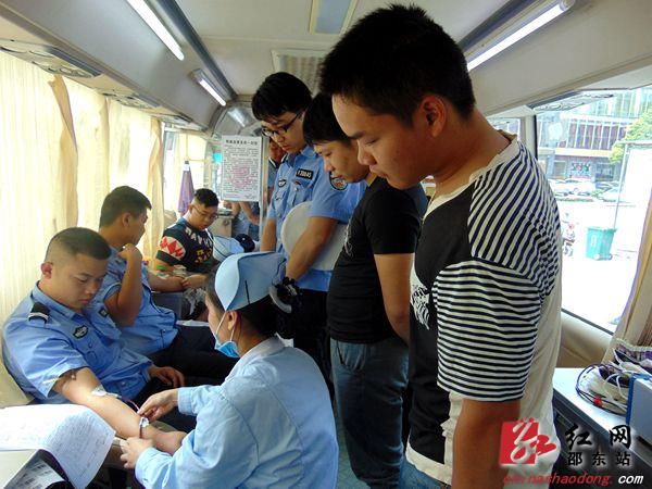 5月25日至5月26日,端午将至,连续两天来,湖南省邵东县机关干部职工显得异常的繁忙,每天上午县政府进门口左侧排着长长献血队伍,一个挨着一个往采血车厢里走,撸起袖子奉献自己的热血。县交警大队、县市场服务中心、县政法委、县委组织部、县人社局等十余个单位100余名干部职工踊跃参加无偿献血,无偿献血者在现场工作人员的有序引导下,进行领表、填表、量血压、验血、采血。采血车内,暖流涌动,热血流淌。采血车外,人流如柱,分外热闹。