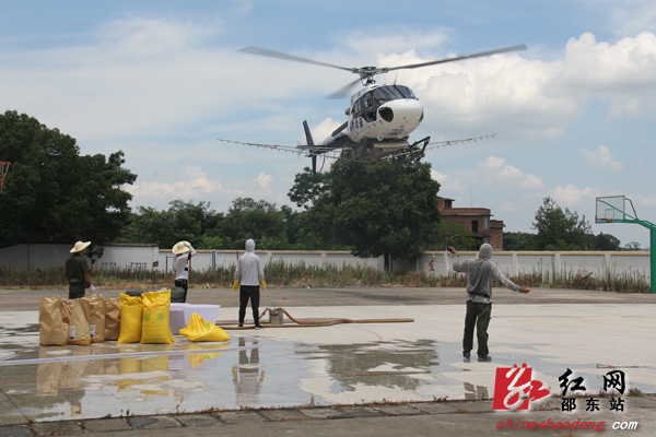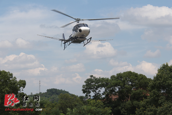 直升机在杨桥镇石子塘中学操场升降