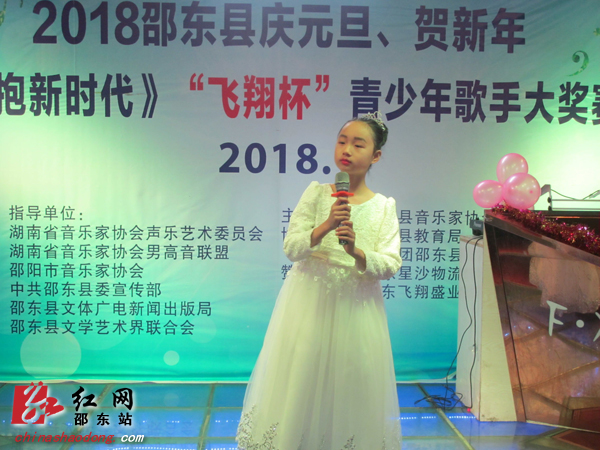 1月7日上午,一阵阵清纯的童声从邵东县城百富广场飞翔KTV清吧传出,原来,2018邵东县庆元旦、贺新年《拥抱新时代》“飞翔杯”青少年歌手大奖赛在这里激情开赛。