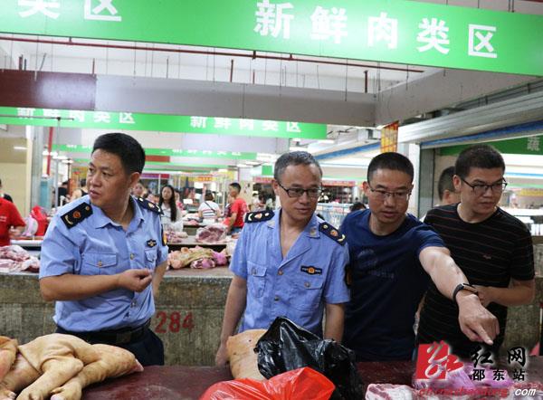 为确保省运会邵东网球赛点比赛期间食品安全,8月28日,邵东县食品药品工商质量监督管理局联合县畜牧水产局对生鲜猪肉进行全程跟踪监督检查。