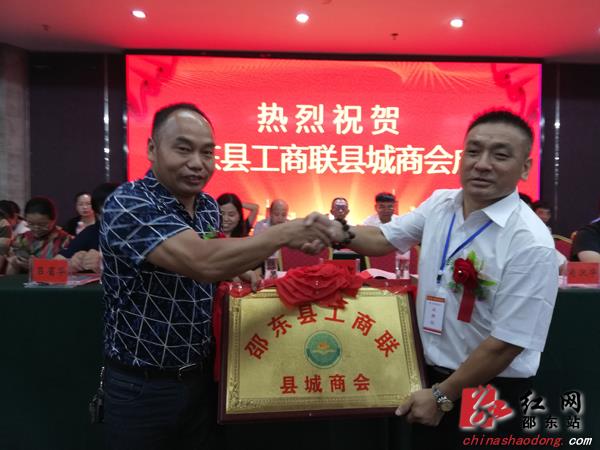 邵东县政协副主席、县工商联主席周益智为邵东县工商联县城商会授牌