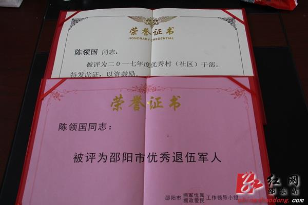 2016年,陈领国联合几名退伍老兵成立了农业开发公司,在邻村承包了183亩荒地种植茶树,如今,茶树已全部成林,明年即可丰产。由于成绩突出,2016年,陈领国被邵阳市评为优秀退伍老兵。