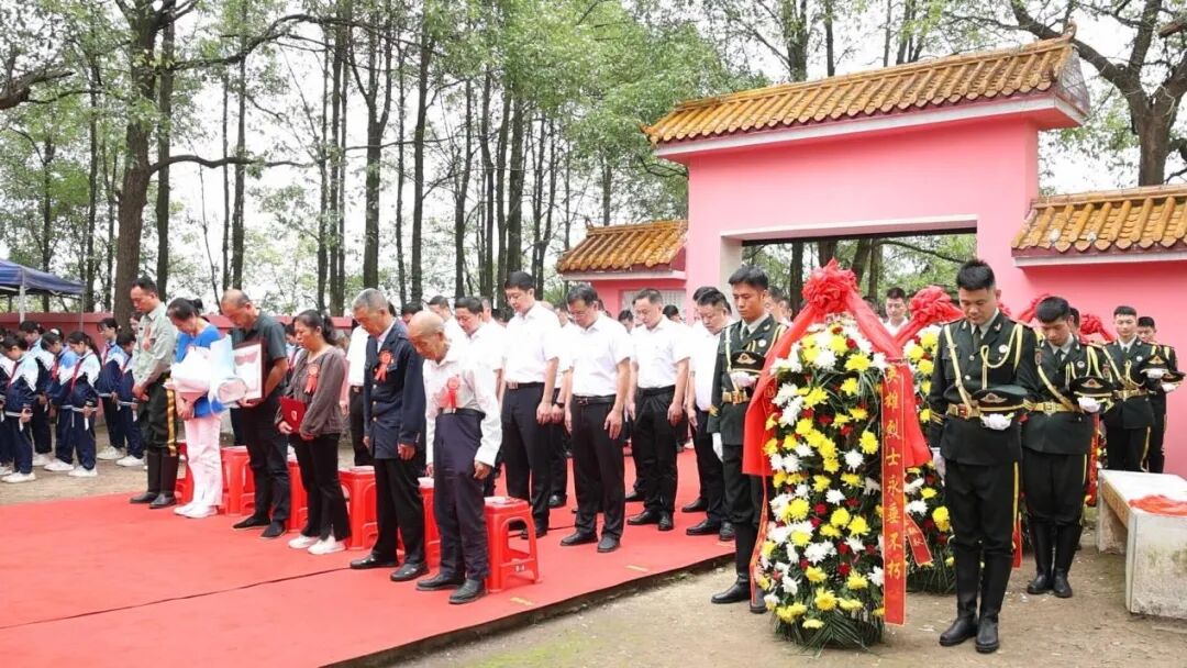 团山烈士陵园松柏静默,气氛庄严肃穆,革命烈士纪念碑巍峨耸立。9时30分,仪式正式开始,全场齐声高唱中华人民共和国国歌。随后,全体肃立默哀,深切缅怀革命英烈的不朽功绩。默哀毕,少先队员面向烈士纪念碑高唱《我们是共产主义接班人》,并致少年先锋队队礼。