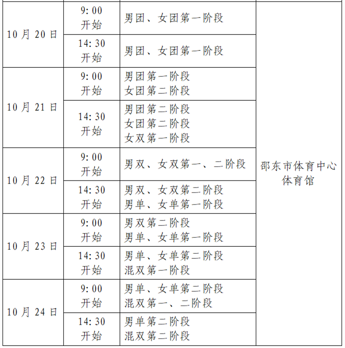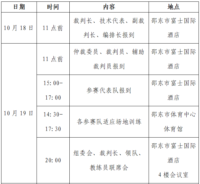 湖南省第六届中学生运动会乒乓球比赛主要活动日程如下: